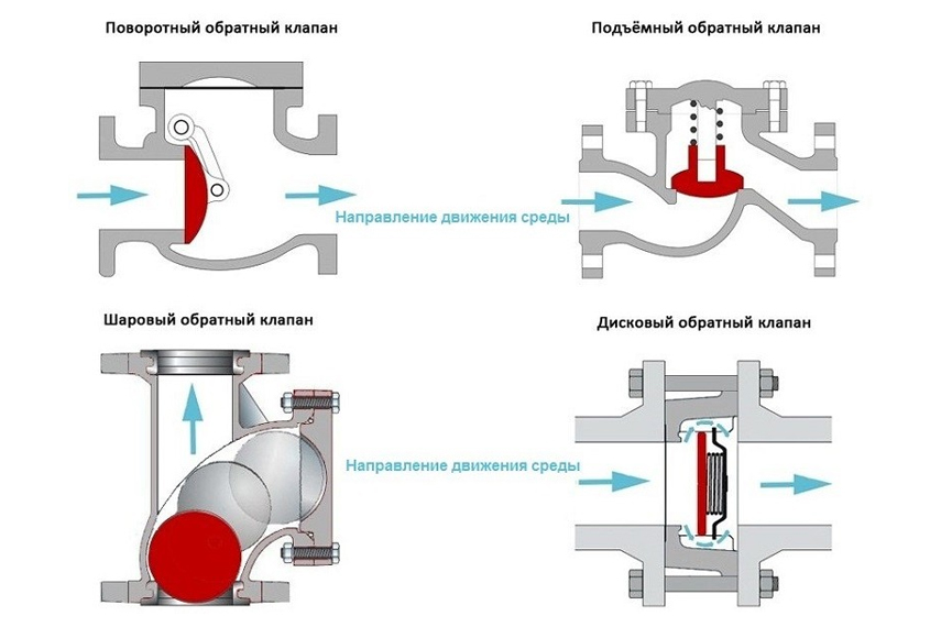 Типы обратных клапановПрименение обратных клапанов